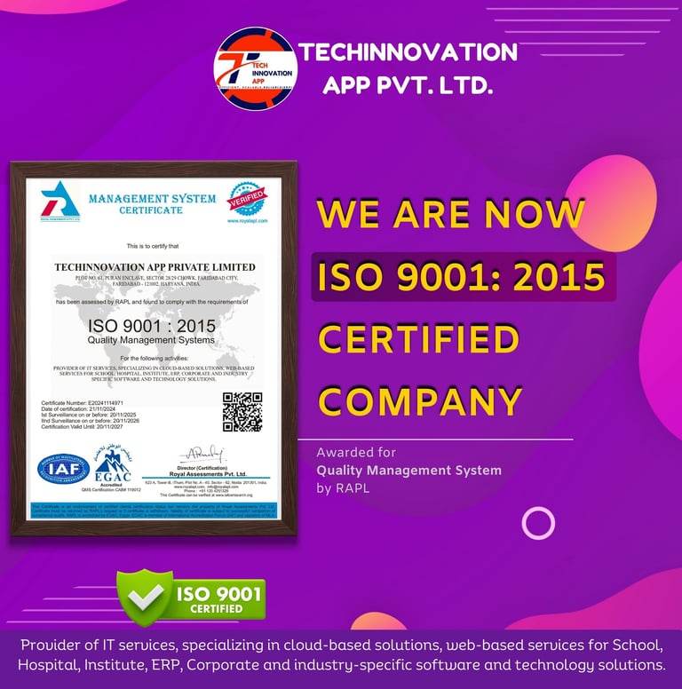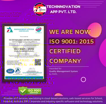 We are thrilled to announce that TechInnovation App is now an ISO 9001:2015 Certified Company! 🏆